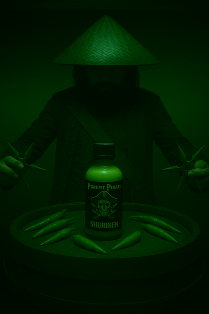 Levons l'ancre cette fois sur les cotes asiatiques, autour de la mer de Chine, avec un équipage composé notamment de piment vert du Vietnam, de poivron vert, de basilic thaï accompagnant la fruitosité du kiwi et de la poire nashi. 29% de piment, cette sauce vous fera incontestablement parler chinois et vous transformera en Capitaine Cheng, pirate de la mer de Chine du XVIIIe siècle !